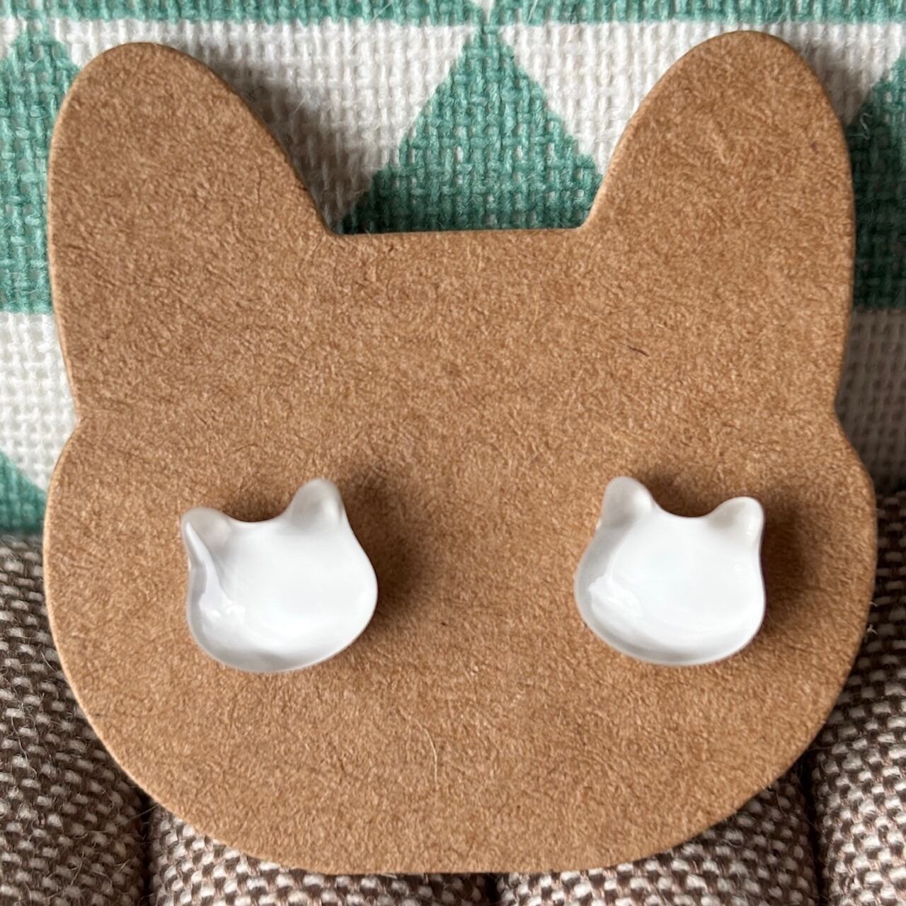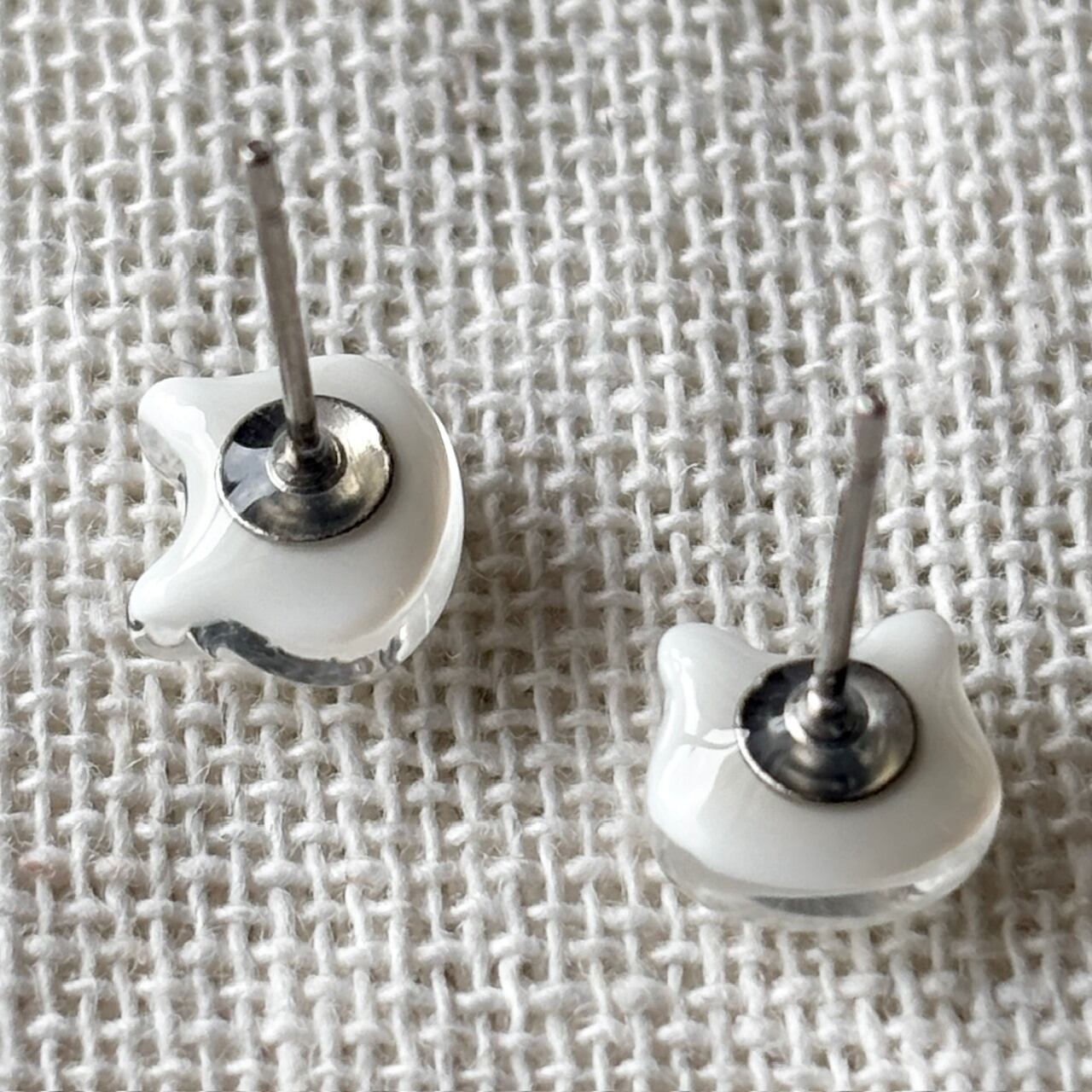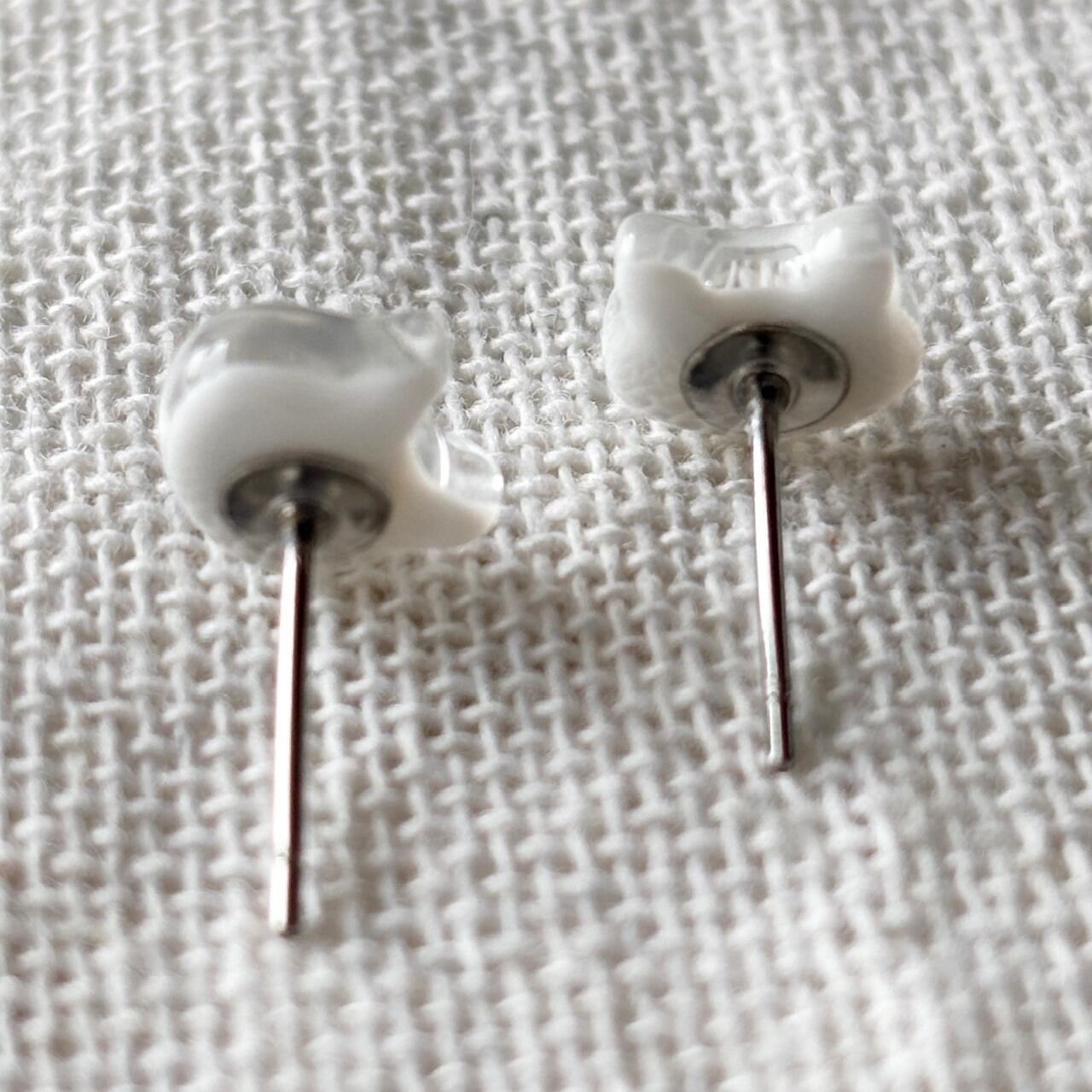ガラスの白猫 小粒 シンプルピアス/イヤリング