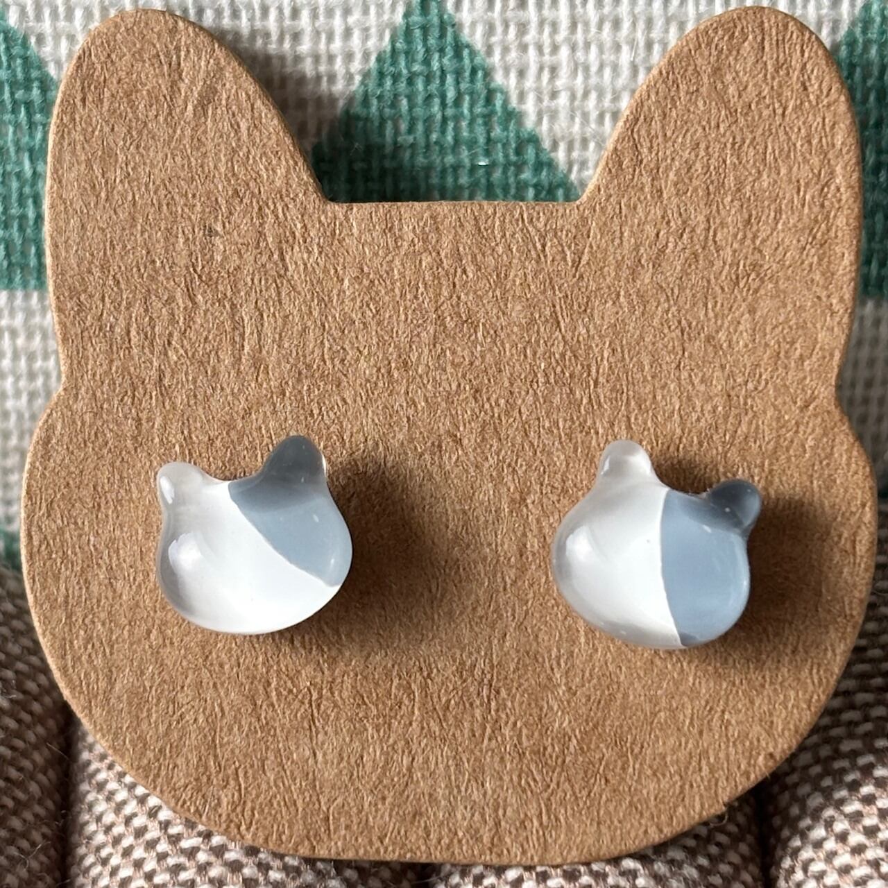 ガラスのグレー×白ぶち猫 小粒 シンプルピアス/イヤリング