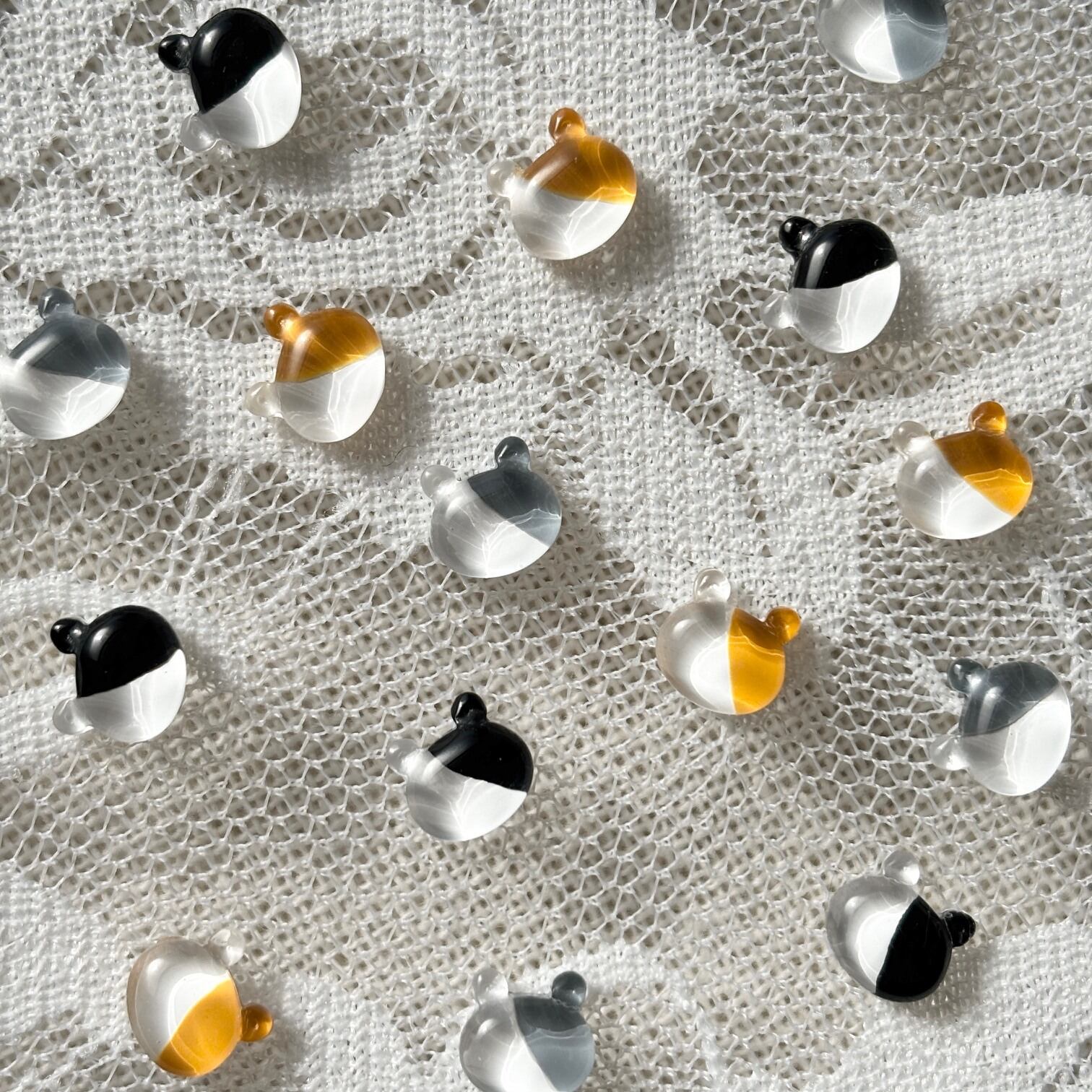 ・作品はひとつひとつ手作りなので、完全な球体や気泡がないといった完璧なものではありません。性質上プラバンを熱加工する際に、切取り部分の細かい箇所に多少色のにじみができることがあります。購入の際はその点をご了承いただければ幸いです。