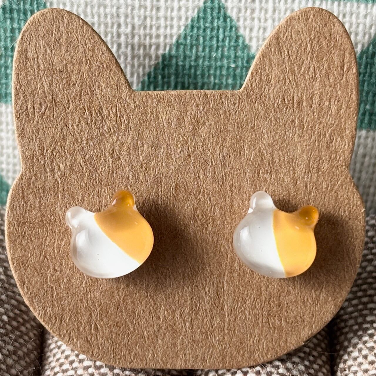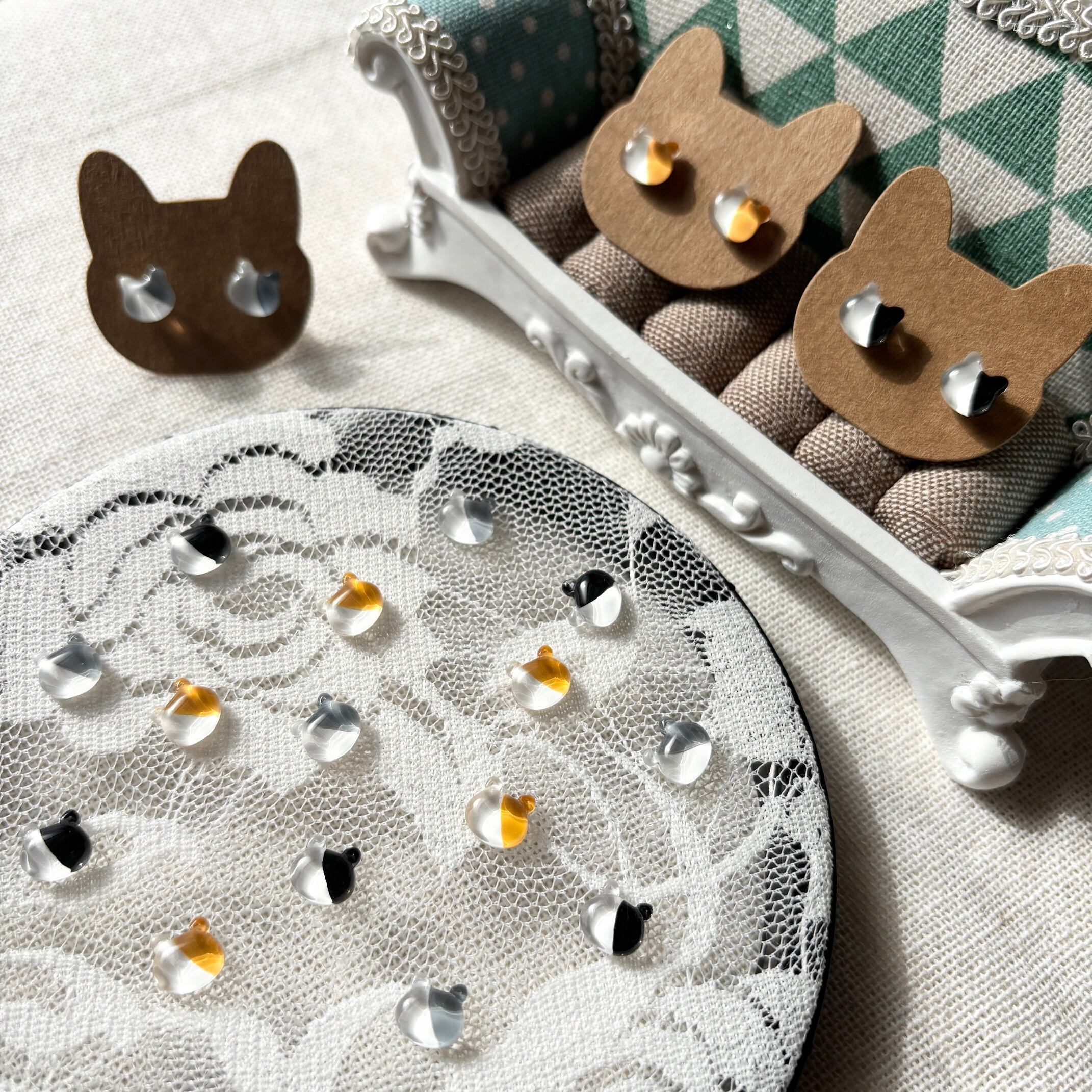 ガラスの茶×白ぶち猫 小粒 シンプルピアス/イヤリング